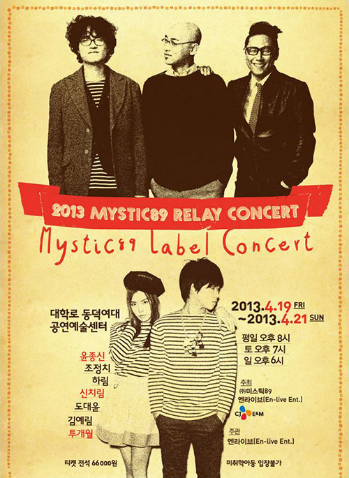 가수 윤종신이 시작한 특별한 행보 “월간 윤종신”이 2010년 4월에 시작한 후 올 해로 3주년을 맞습니다. 이를 기념하여 그의 소속레이블인 Mystic89의 뮤지션들이 총출동하는 이번 릴레이 콘서트는 지난 3년간의 “월간 윤종신”의 왕중왕 결산과 떠오로는 대세 “신치림”의 어쿠스틱한 무대, 그리고 화제속에 첫 앨범을 준비하며 이번 공연에서 첫 모습을 드러낼 “투개월”까지 다양한 컨셉의 음악과 무대가 만나는 특별한 소극장 릴레이 콘서트가 될 예정입니다.