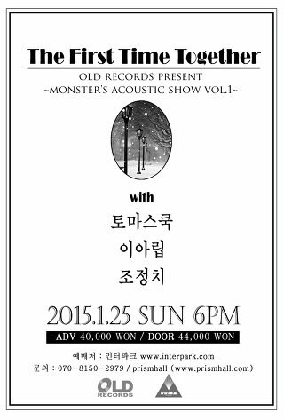 'The First Time Together' 토마스쿡, 이아립, 조정치와 함께 하는 을미년 새해의 첫 어쿠스틱 이벤트. 전 현직 라디오DJ 삼인방의 화려한 언변과 유창한 표준어 대공습!! 서로 알고 지낸지는 꽤 되었지만 한 무대에 서는 건 처음인 이들... 그렇다! 이게 처음이자 마지막이 될 수도 있는 무대 이 공연을 놓친다면 앞으로 그들을 한 무대에서 다시 볼 수 있을지는 미지수!! 이 기적같은 무대를 확인하시라!!